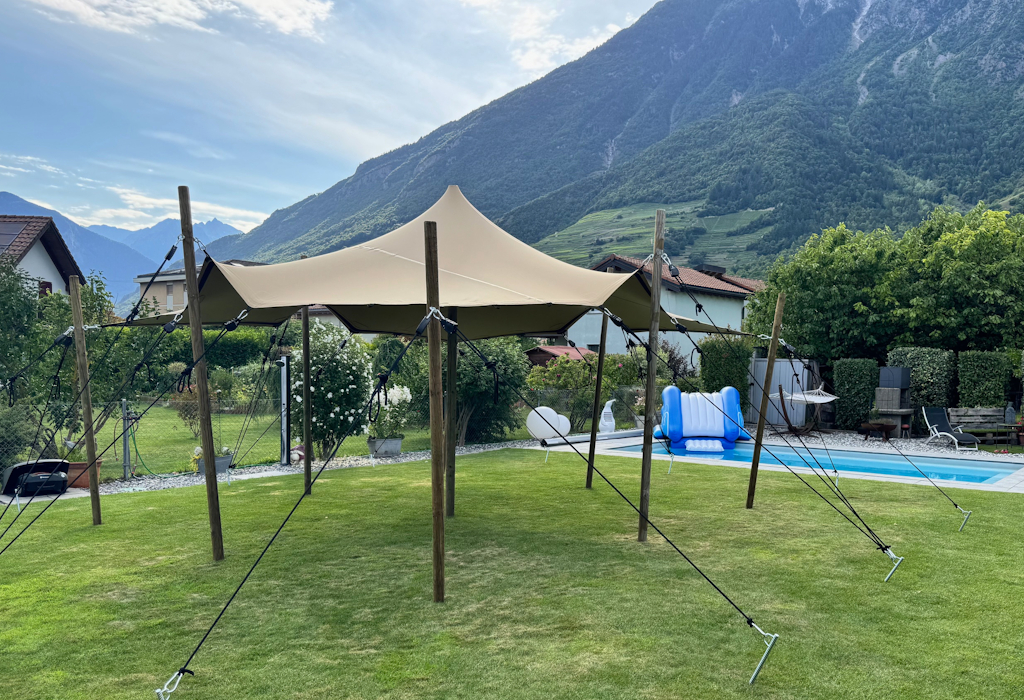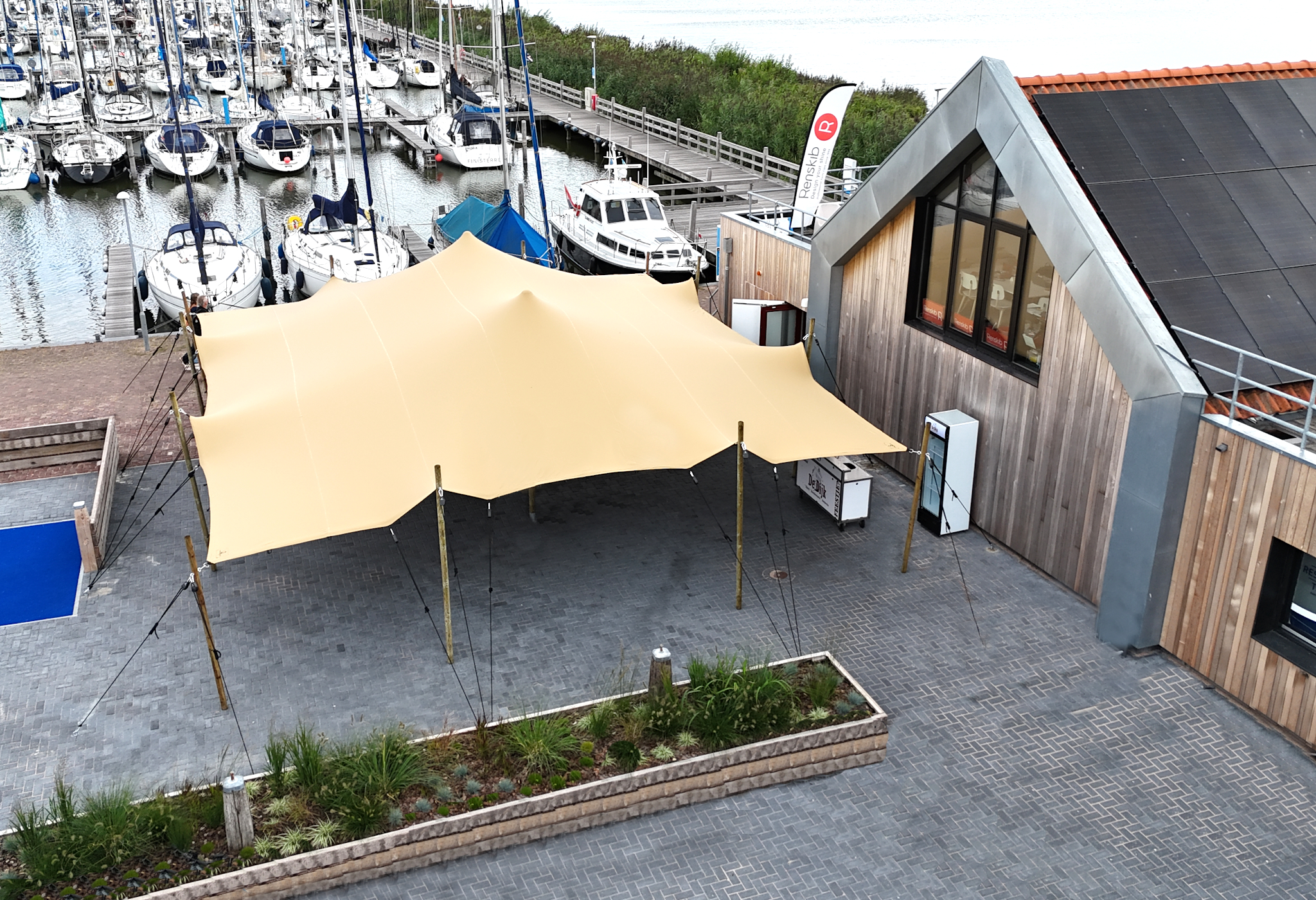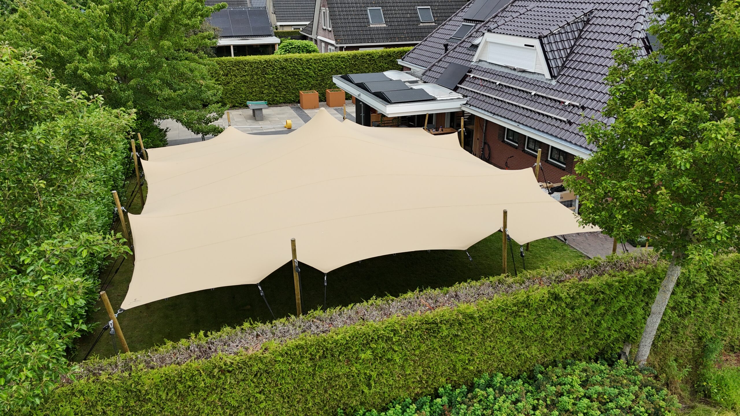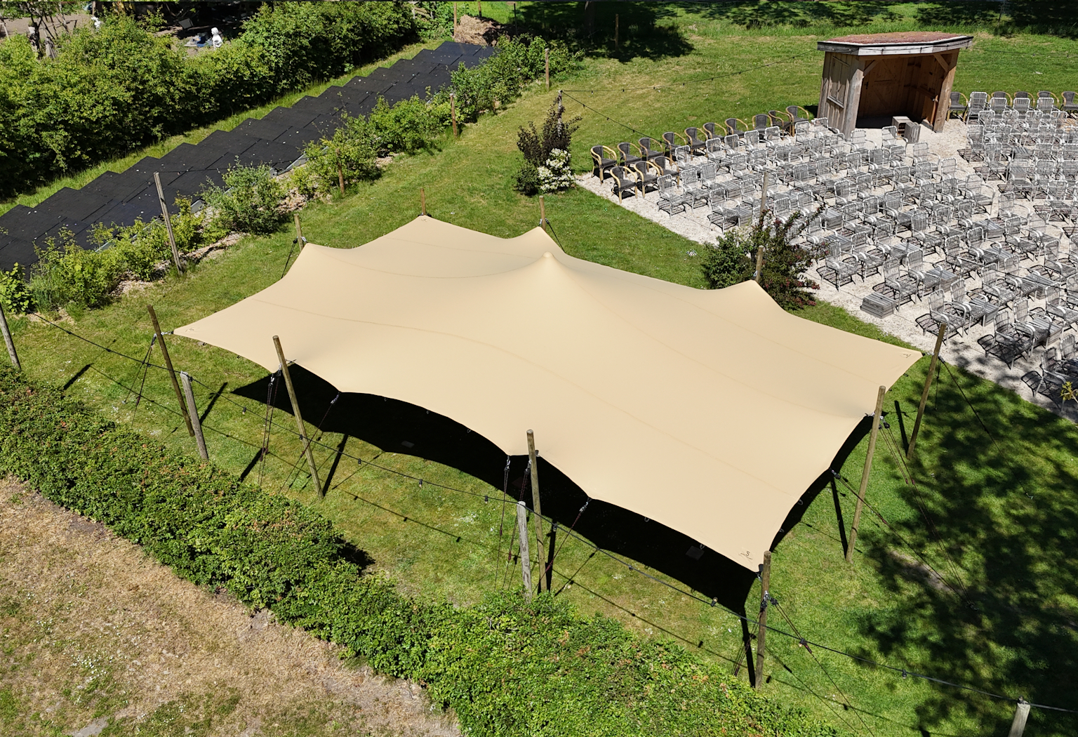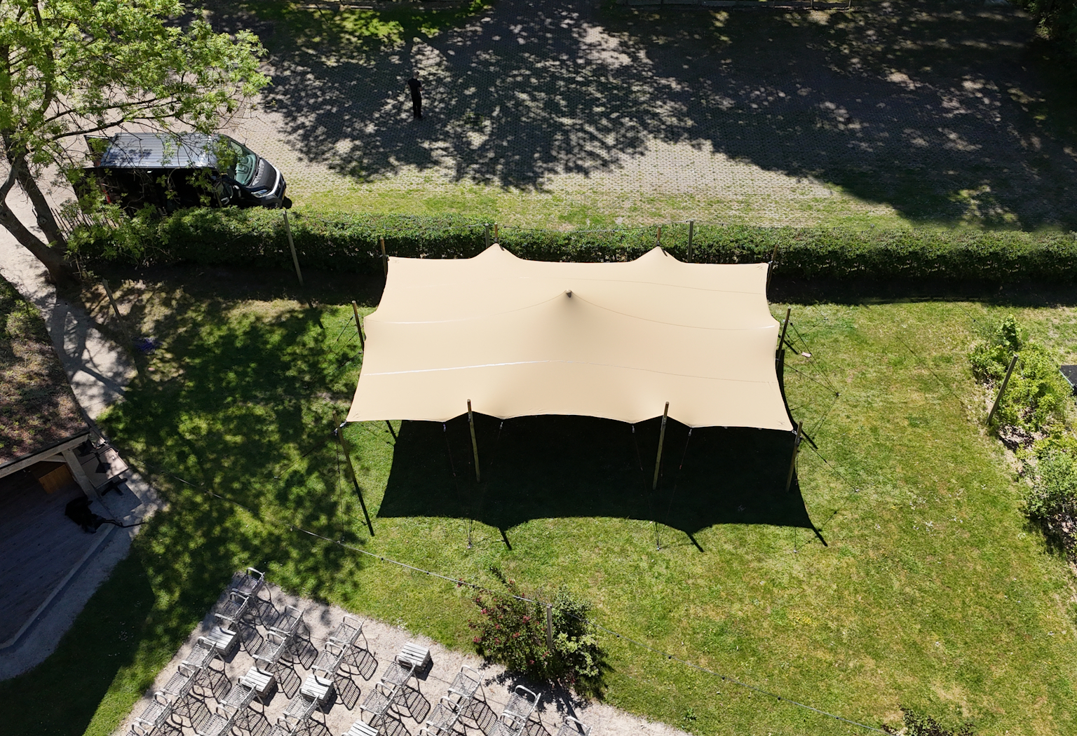 The material in our stretch tents is carefully selected to not only be aesthetically pleasing, but also highly functional and durable. Thanks to its special coating, the tarpaulin is completely resistant to mold, which ensures that it remains fresh and hygienic for long periods, even in humid environments. This makes our stretch tents ideal for different weather conditions and locations.
