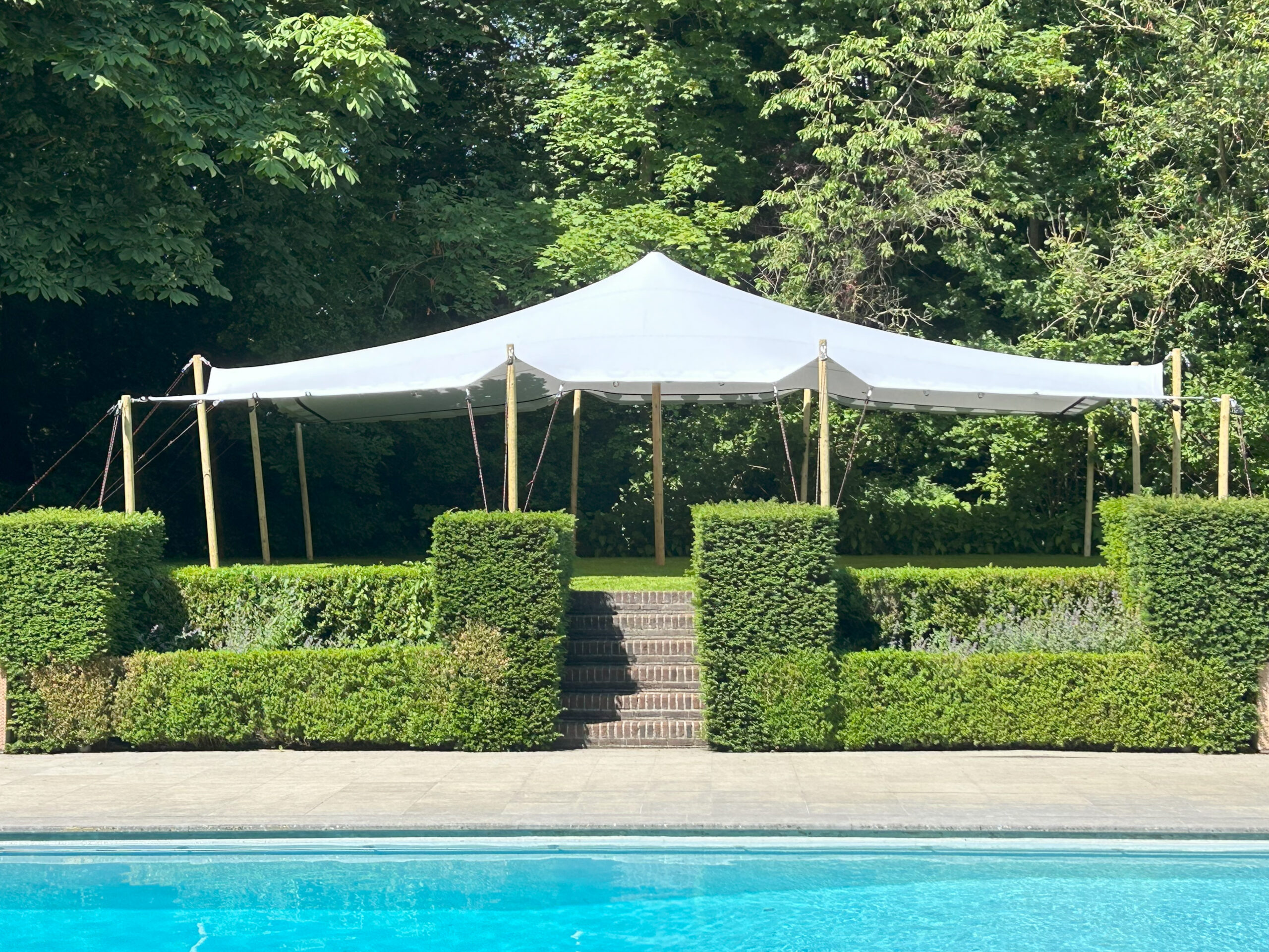 Our stretch tents are manufactured with meticulous attention to detail and quality. The 720gsm fabric is coated on one side and has a technically advanced textile finish on the underside, developed exclusively by our in-house team. This combination of high-quality materials and fire-resistant textiles guarantees a durable and safe solution that ensures that your event is not only comfortable, but also worry-free.