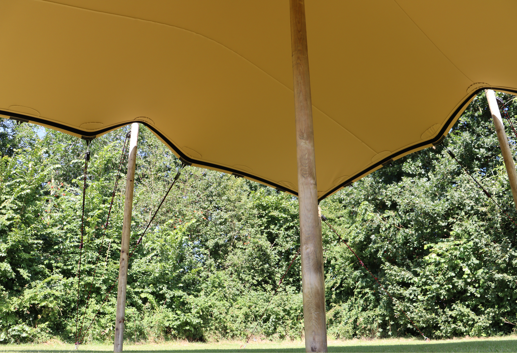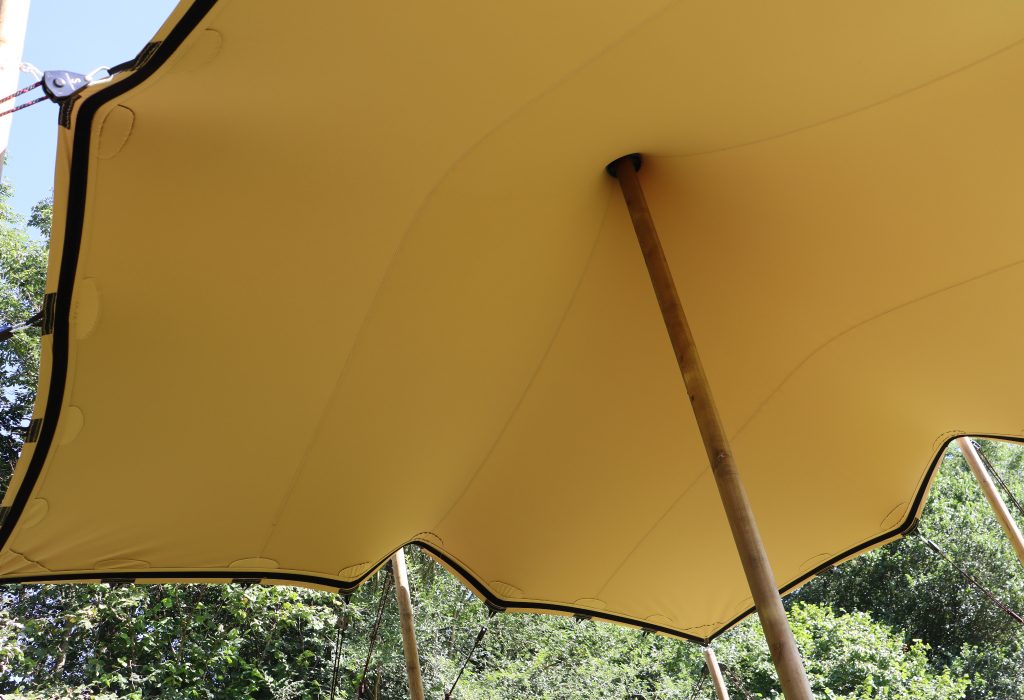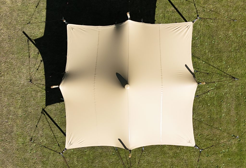 With its relatively compact dimensions of 5.0 x 5.0 m, this stretch tent offers space for around 25 people.